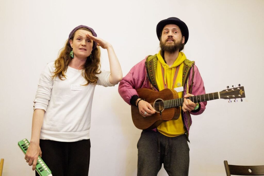 Holly and Marcus met teaching somgs for protest and activism. Known for their upbeat, groove filled songs about positive change their workshops will be filled with hope and singing our way to a better world.